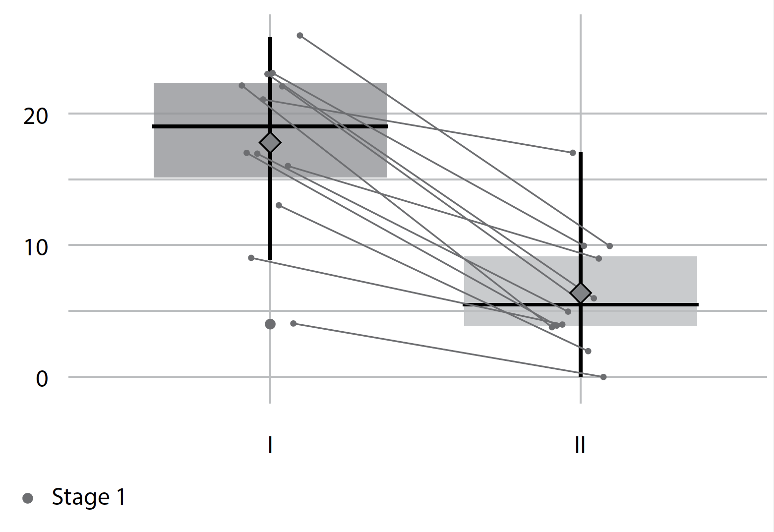 Fig. 3. TWSTRS scores pre (I) and immediately post (II) MRgFUS intervention.