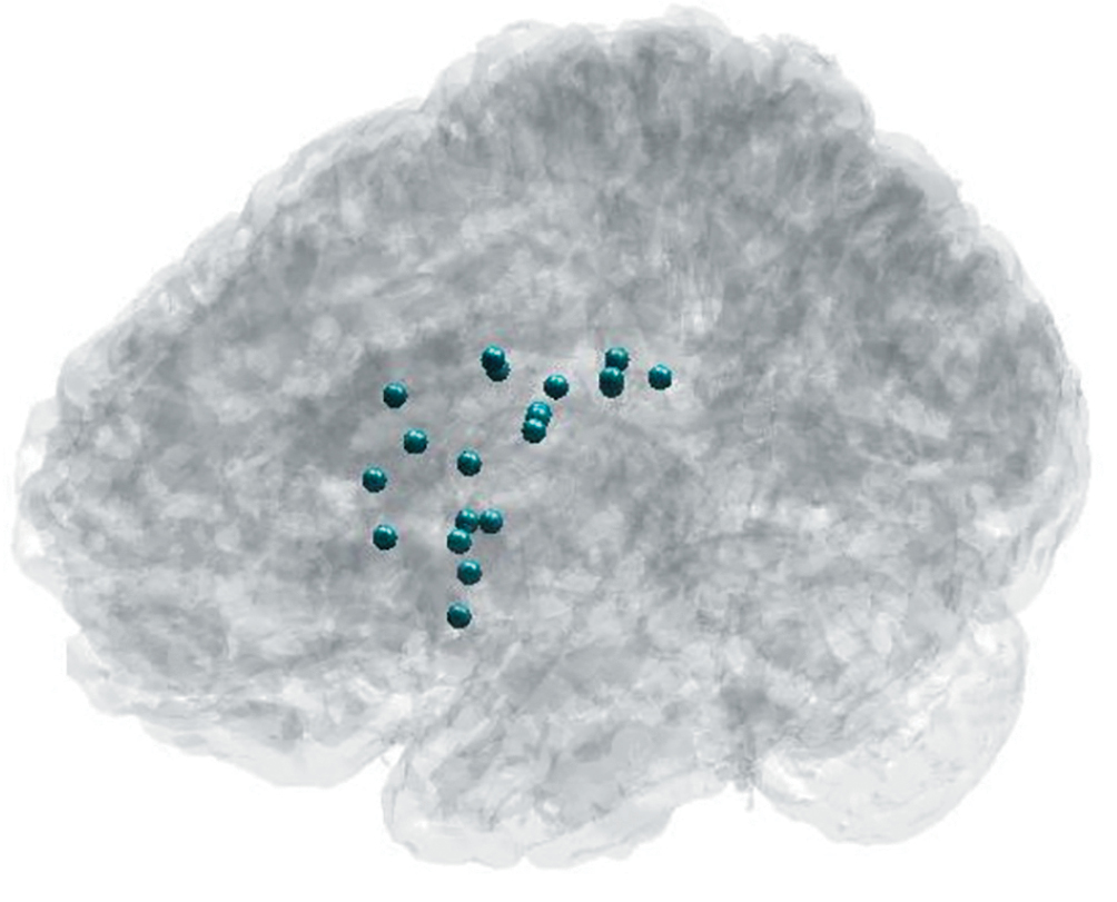 Fig. 2. Localization of stimulation target within the left DLPFC in the active group.