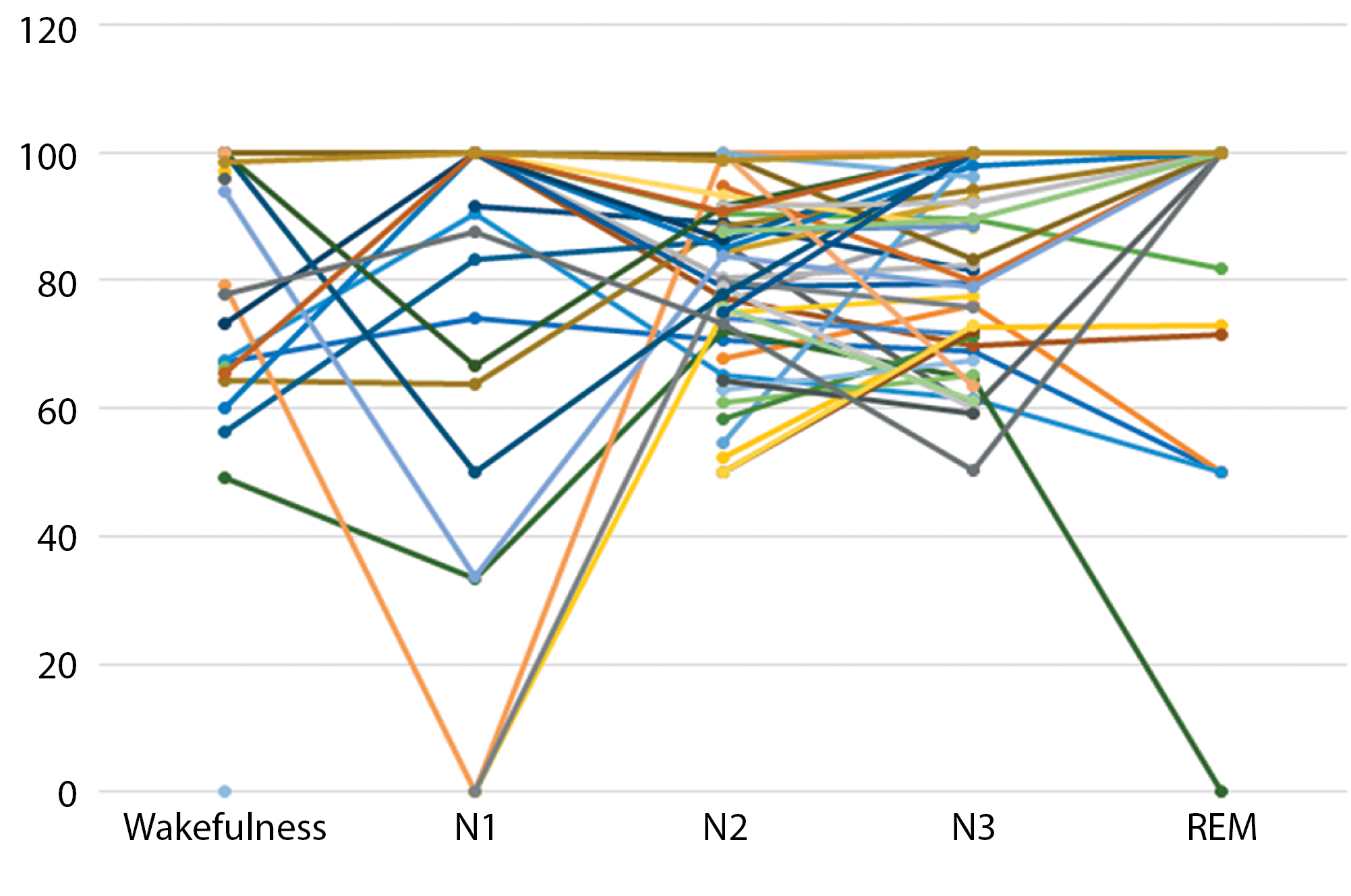 Table 2. Distribution of EA across sleep stages and wakefulness, n (%)