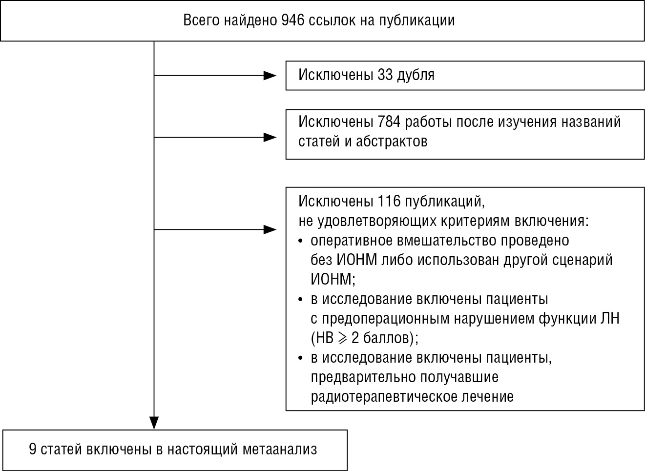 Materials and methods. The meta-analysis included 946 publications from PubMed, Google Scholar, Web of Science, and eLIBRARY.RU, of which 9 studies meeting the inclusion and exclusion criteria were selected. The total number of patients was 1875, with 278 having FP after microsurgical removal of vestibular schwannoma. The pooled mean age of patients was 46.9 [44.5; 49.4] years, with a male-to-female ratio of 1 : 1.