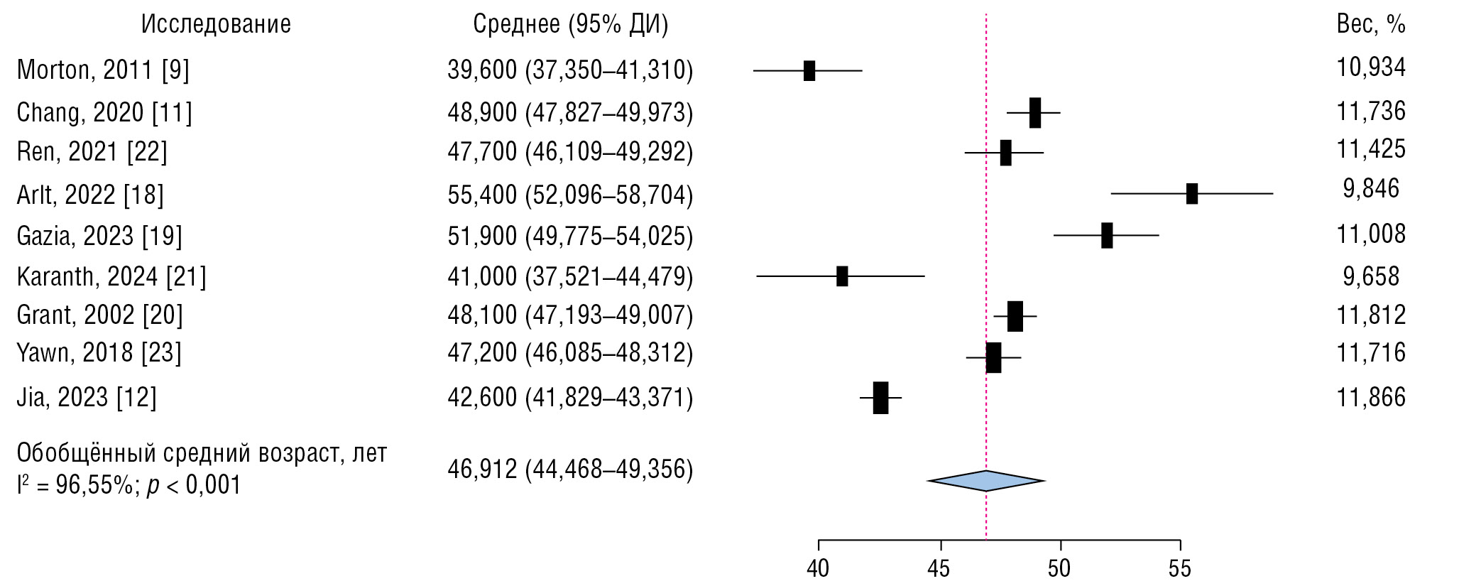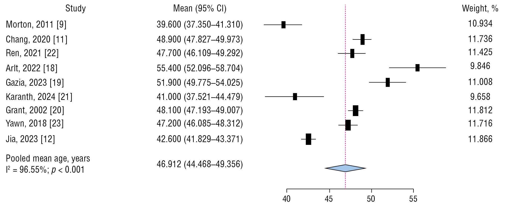 Fig. 2. Results of the meta-analysis of the pooled mean age of patients.