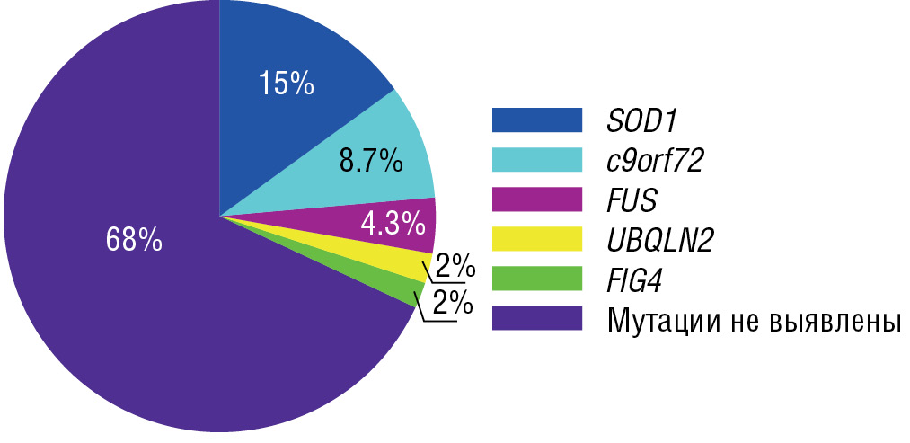 2. Рис. 1. Распределение мутаций в каузальных генах БАС среди 47 пациентов с рнБАС, наблюдающихся в 6-м неврологическом отделении РЦНН.