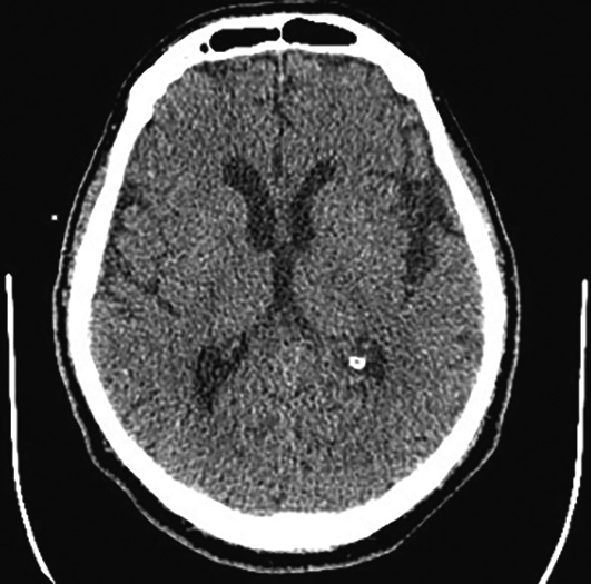Рис. 1. Бесконтрастная КТ головного мозга пациента М. при поступлении. ASPECTS 10 баллов. / Fig. 1. Plain brain multislice computed tomography of patient M. on admission. ASPECTS 10.