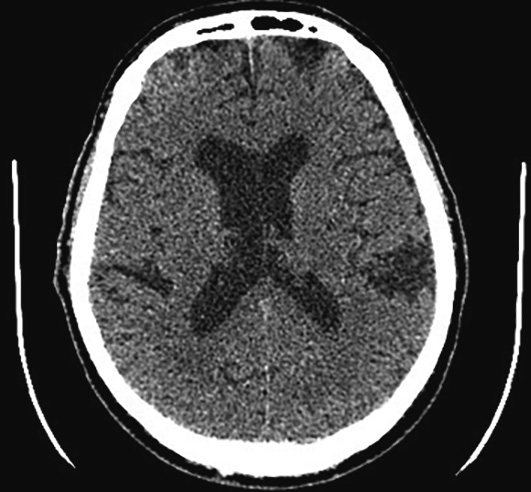 Рис. 4. МСКТ пациента М. через 24 ч после поступления. ASPECTS 10 баллов, данных за геморрагическую трансформацию не получено. / Fig. 4. Patient M.'s MSCT scan in 24 h after admission. ASPECTS 10, no signs of hemorrhagic transformation.