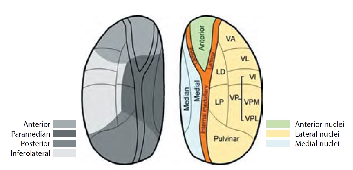 - Percheron G. The anatomy of the arterial supply of the human thalamus and its use for the interpretation of the thalamic vascular pathology. Z. Neurol. 1973; 205(1): 1–13. doi: 10.1007/BF00315956