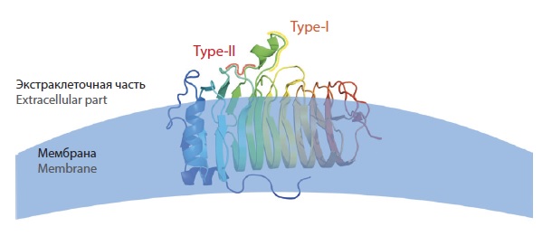 Рис. 1. CD20 и эпитопы связывания. / Fig. 1. CD20 and epitopes.