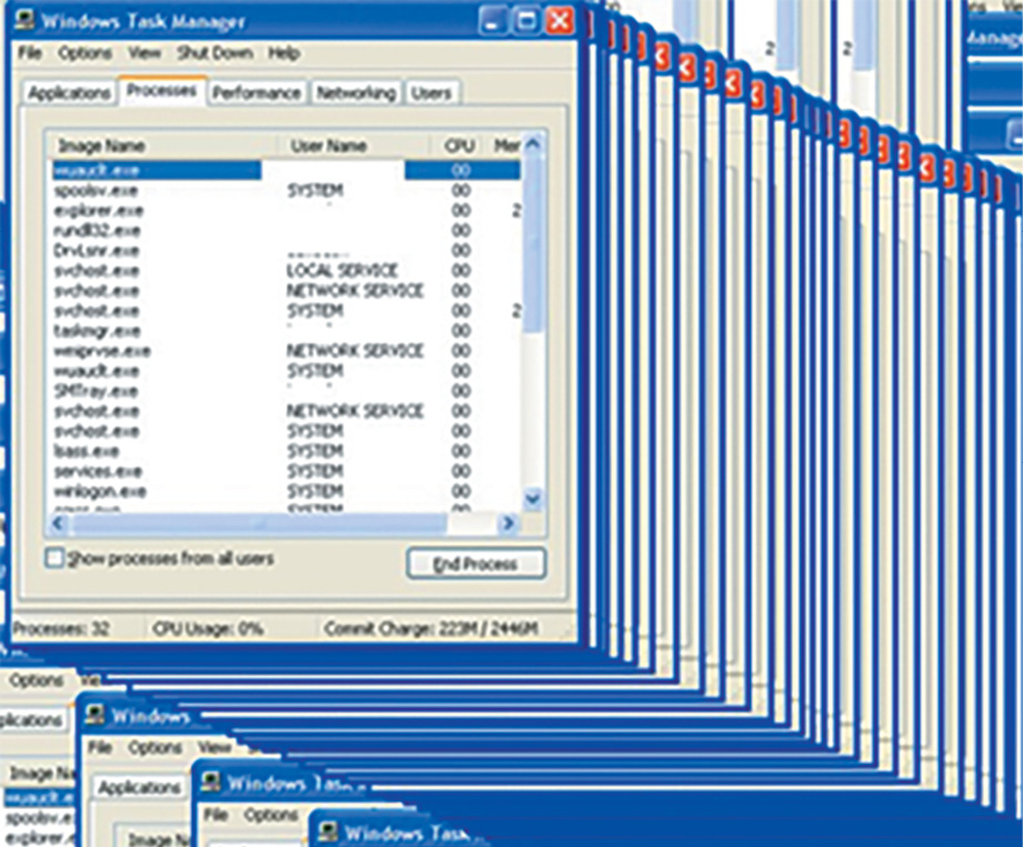 Пациент А., 31 год. Госпитализирован с жалобами на нарушение зрения. При взгляде на объект двумя глазами «видел его как множество тех же объектов, выстроенных в ряд» (рис. 1). При раздельном зрении, когда больной прикрывал левый глаз, искажение восприятия со стороны правого глаза сохранялось; восприятие же левым глазом при закрытом правом было обычным. Те же нарушения зрения возникали при повторной фиксации взора на новом объекте. Сам объект и окружающий его фон видел отчётливо. Продолжительность нарушения зрения — около 1 мин.