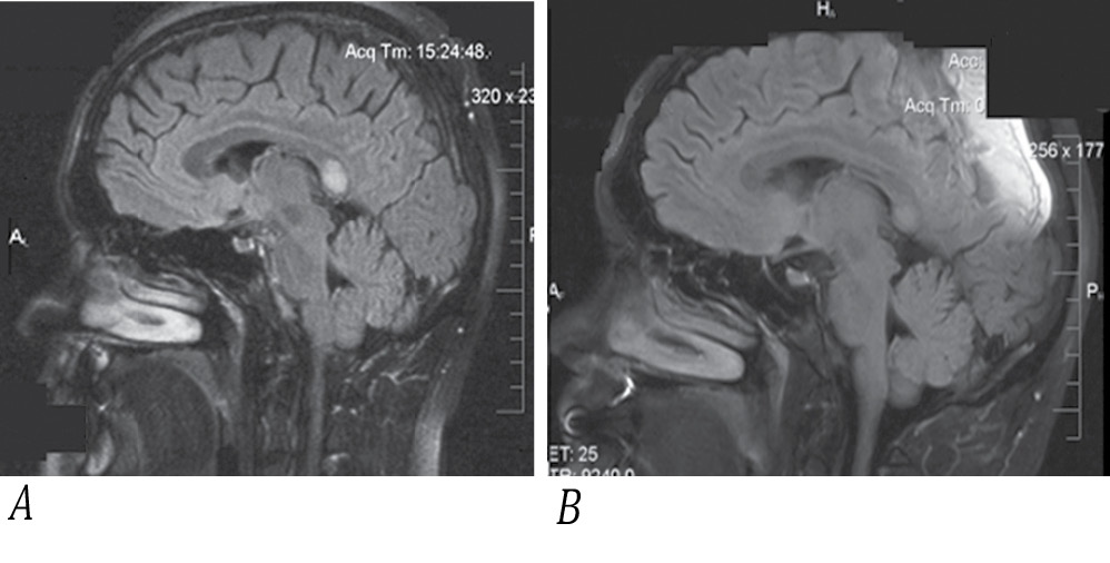 Fig. 4. Sagittal brain FLAIR MRI of рatient A.